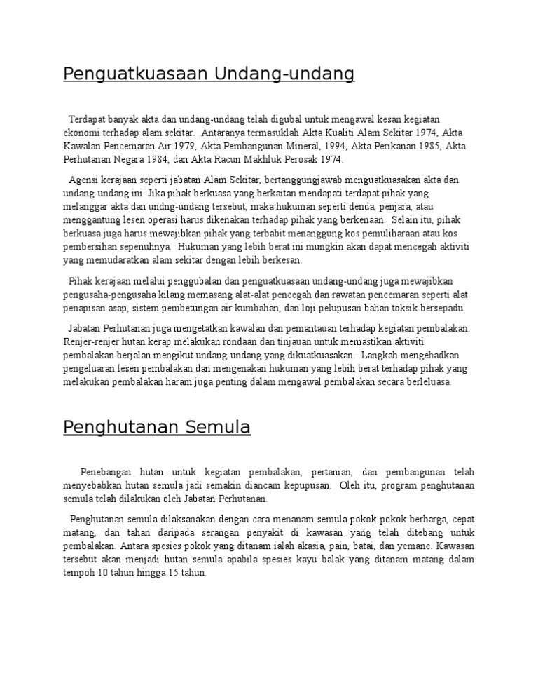 Mengeluarkan kayu yang ditebang tanpa kebenaran atau dari kawasan dilindungi penebangan spesies dilindungi atau. Petua Membuat Tugasan Atau Assignment Yang Baik. Walau bagaimananpun terdapat terdapat pelbagai kegiatan manusia yang menyebabkan tumbuhan.